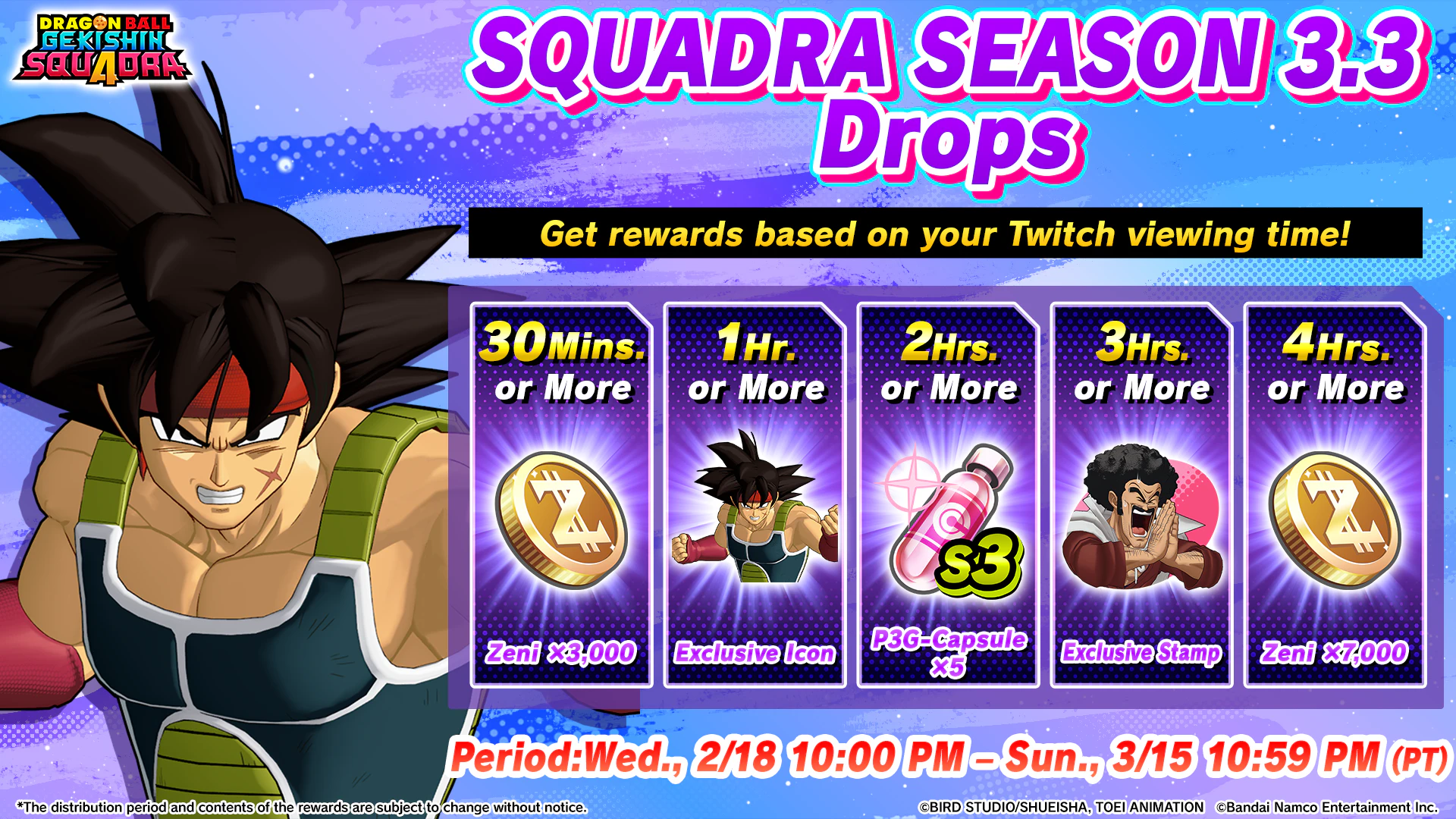 ③Watch DRAGON BALL GEKISHIN SQUADRA streams on Twitch.tv and receive rewards.