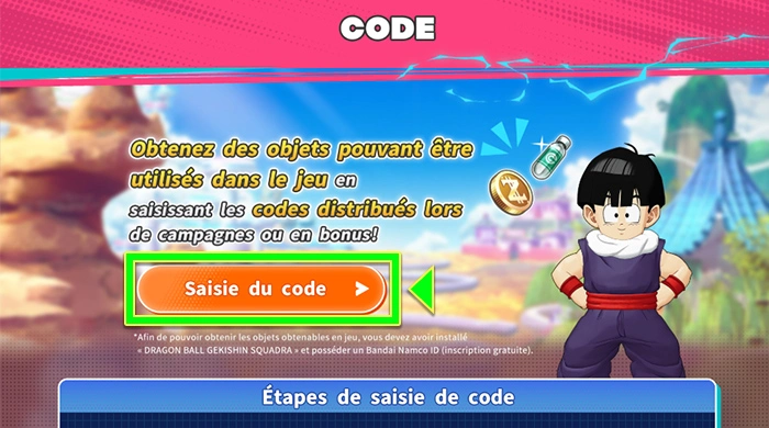 Sélectionnez Liaison Bandai Namco ID depuis le Menu.