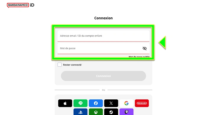 Après avoir lu les points importants, connectez-vous avec votre Bandai Namco ID.