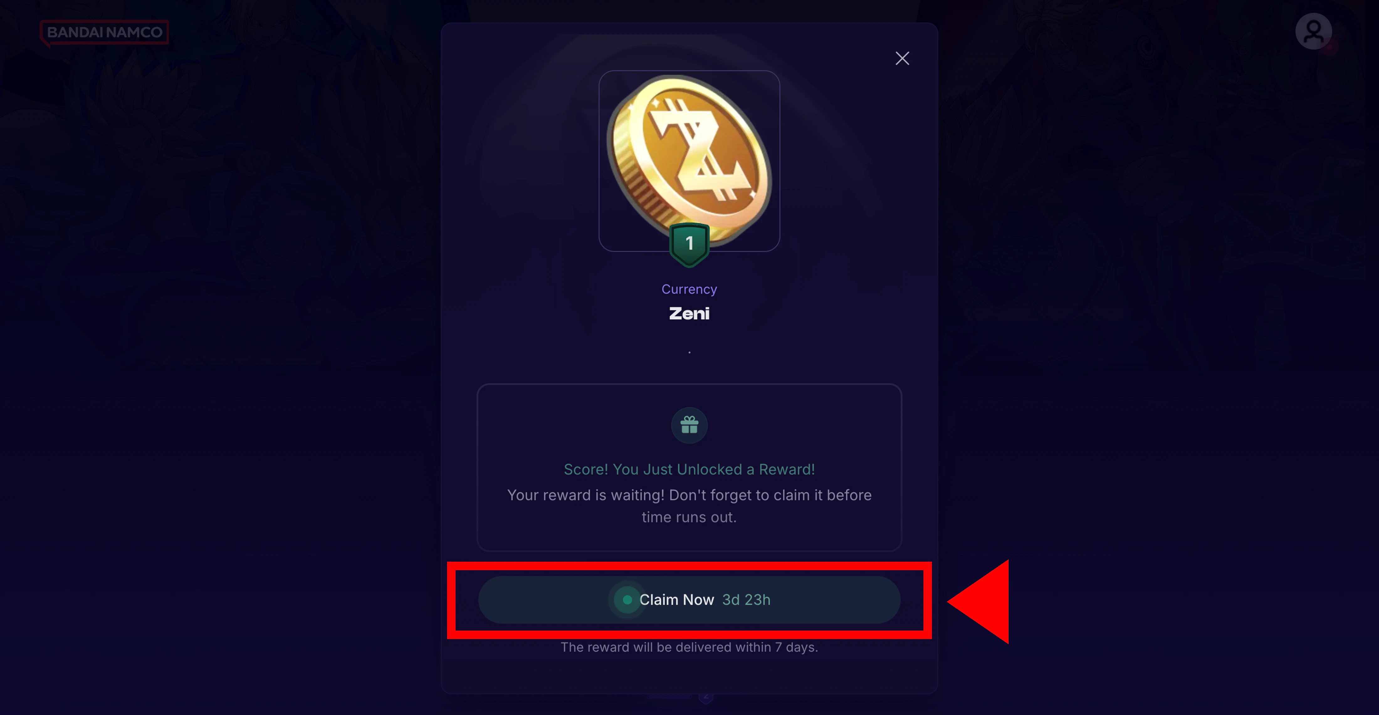 ・当選通知後約7営業日以内に、バンダイナムコIDと連携した本サービス内アカウントに報酬を付与いたします。本サービス内のお知らせより、報酬を受け取りください。