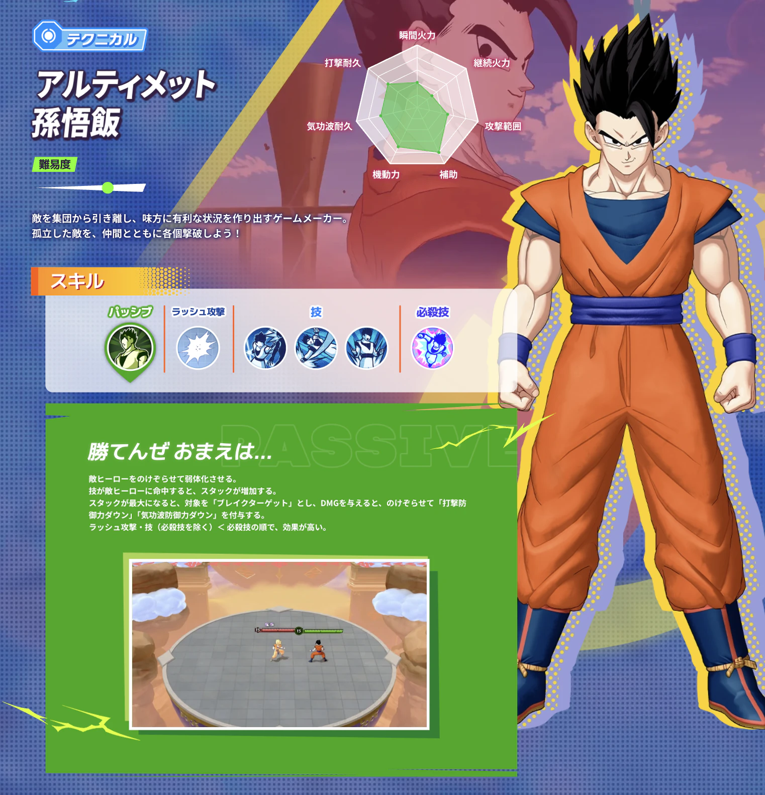 2025-12-03アップデート情報【アルティメット孫悟飯】参戦!『ドラゴンボール ゲキシン スクアドラ』に「アルティメット孫悟飯」参戦! ロール:テクニカル敵を集団から引き離し、味方に有利な状況を作り出すゲームメーカー。孤立した敵を、仲間とともに各個撃破しよう! 詳細はヒーローページからチェック!