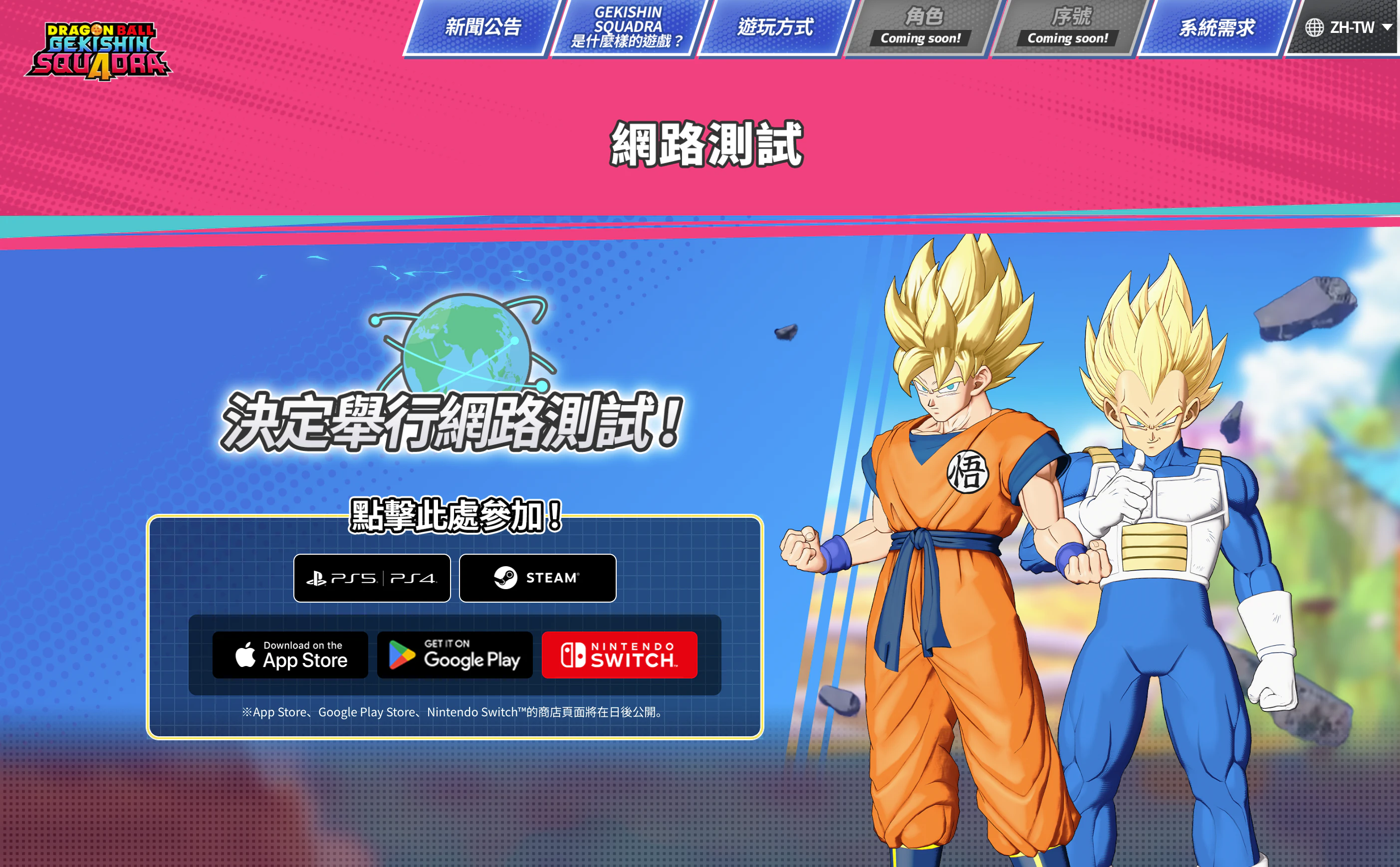 ※部分平台將以「DRAGON BALL GEKISHIN SQUADRA EM」作為網路測試名稱進行遊玩。